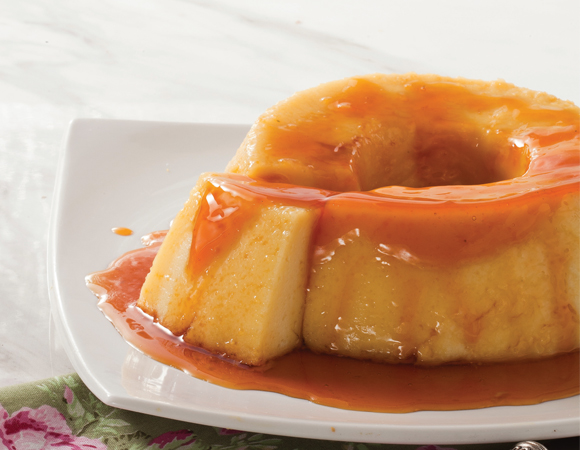 Transfira o liquido do liquidificador para uma forma de pudim, já pronta com o caramelo.